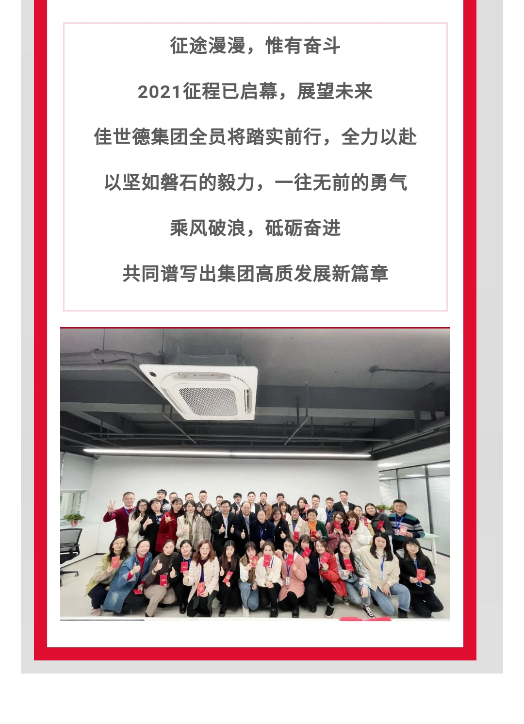 2021年1月30日,千亿最新版2020年度经营分析会在经开区人力资源服务产业园二楼隆重举行。千亿最新版董事长王仕辉、千亿最新版创始人宋晓平携集团高管和全体员工共同回顾了过去一年的发展历程,并展望了新一年的愿景和目标。