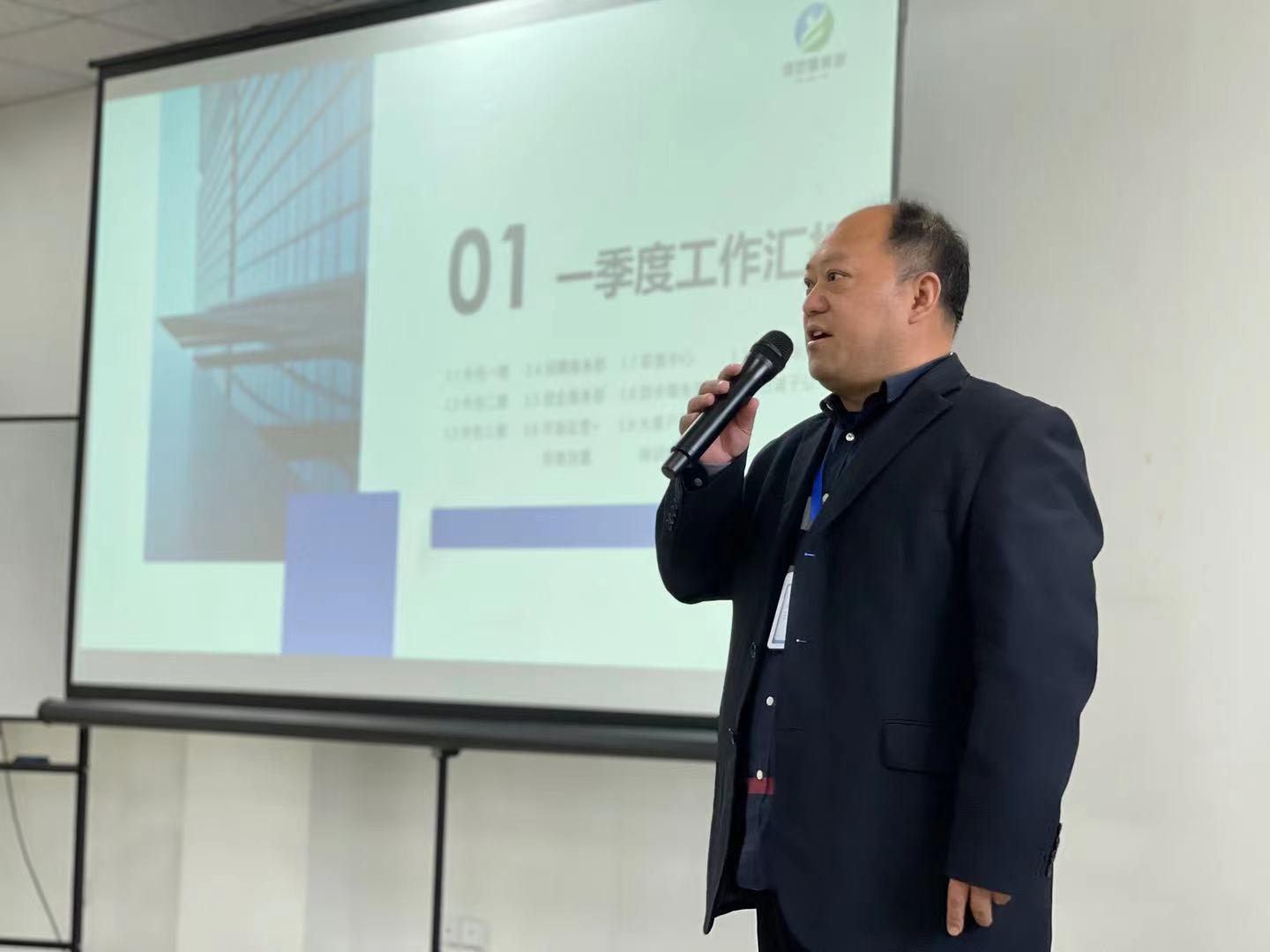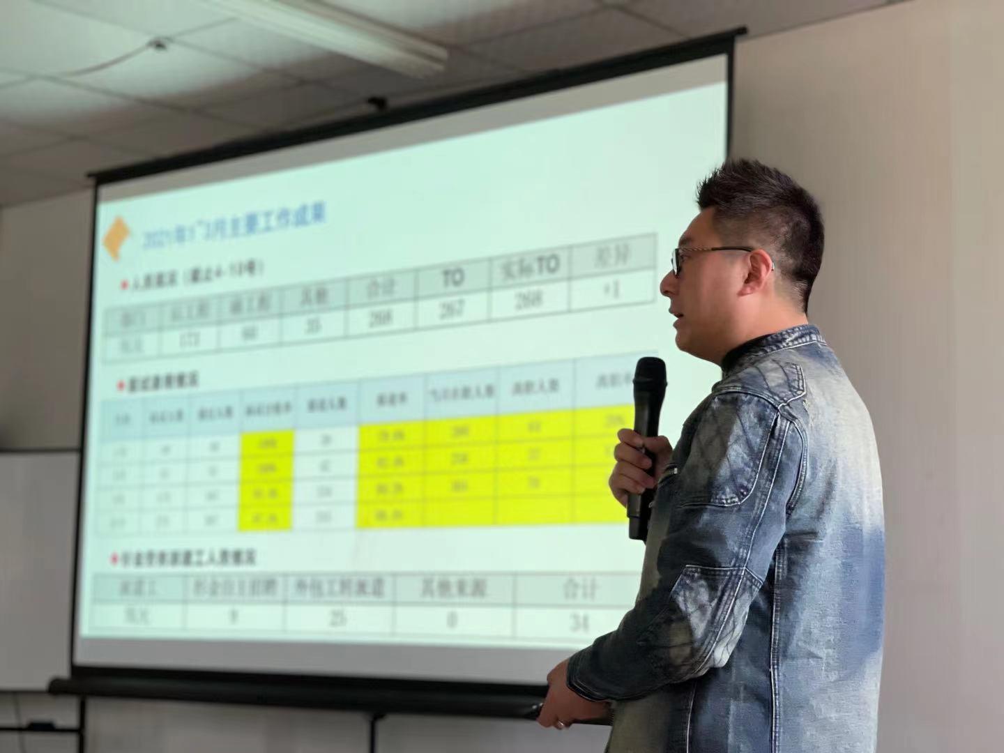 总结会上,集团董事长王仕辉先生上台发表讲话,他肯定了全体员工在第一季度付出的努力和取得的成绩,期待大家在未来的每一天都能用专业和创新的思维用心服务客户,让佳世德成为更有温度的人力资源服务商。