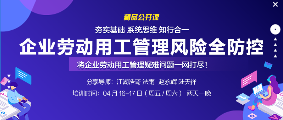公开课从工作实务角度出发,从劳动用工法律法规核心条款解读、企业劳动用工管理的两大法宝、员工入职管理的若干疑难问题剖析及风险防范、员工在职管理的若干疑难问题剖析及风险防范、员工离职管理的若干疑难问题剖析及风险防范、企业劳动用工风险盘点及应对策略、卓越HR经理人应该具备的六大思维六大方面全方位讲解企业劳动用工管理中风险与管控方法。通过专业的讲解、有益的互动,助力人力资源管理者提高劳动用工法律风险防范意识,深化对劳动用工法律法规的理解,促进企业日常人力管理工作趋向合法、合规。