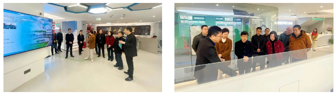 调研组首先参观了数字零工市场的大数据平台、可视化数字孪生系统、招聘平台系统、培训管理系统、VR安全生产培训系统、数字直播间等先进设施。通过实地查看和听取介绍,对数字零工市场如何利用现代科技手段,提升服务效率、优化就业服务流程有了直观的认识,给予了高度赞许。